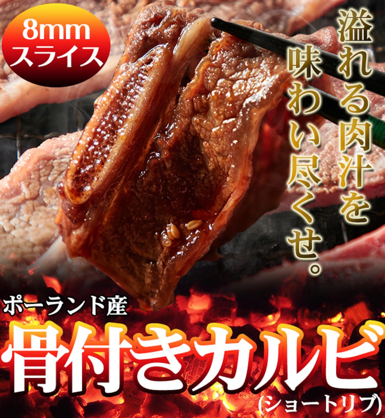 ㋨ 【ポーランド産】骨付きカルビ(ショートリブ)~どっさり約1kg~お肉屋さんが自信をもってお届けする珠玉の一品。
